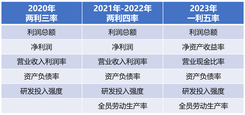 而从国资委对国有企业的考核指标制定也能够看出端倪,2023年,主要经营指标由“两利四率”调整为“一利五率”,同时提出了“一增一稳四提升”的年度经营目标。